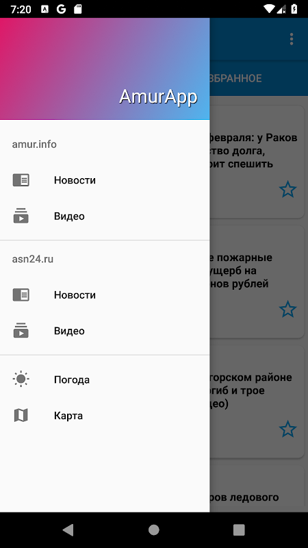Информационное приложение AmurApp включающие в себя новости с таких ресурсов как: