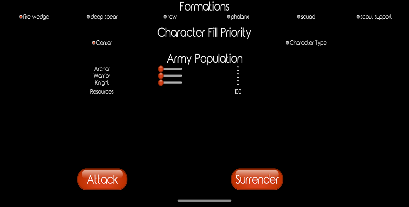 This is an early version of a strategic war game where you select the types of characters you will use in your squad as well as the formation for each battle. The one who has the most resources at the end of the game wins.