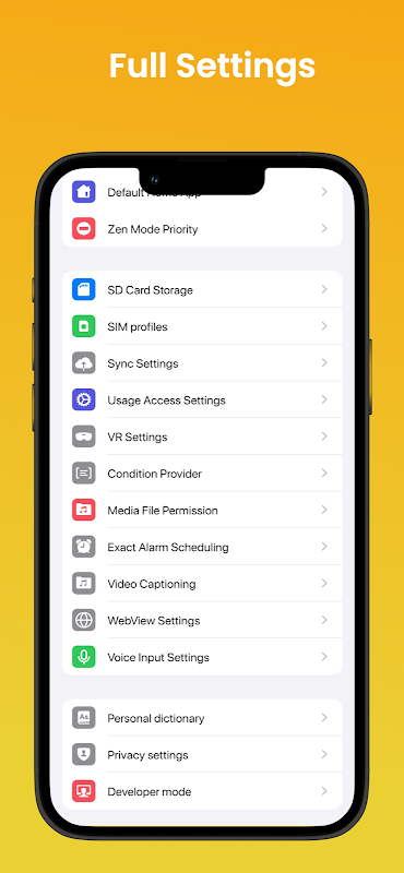 此应用程序可帮助您访问 Android 操作系统的隐藏设置,帮助您轻松找到它们。您总是花费大量时间来查找隐藏设置,此应用程序将帮助您快速找到隐藏设置,帮助您节省大量时间。