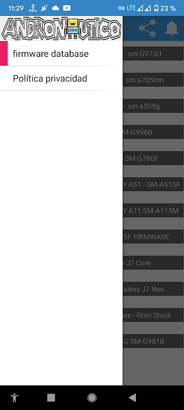 Andronautico, Firmware y database es una aplicacion, donde encontraras una amplia base de datos de tus firmwares y roms.