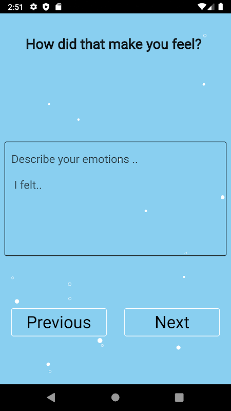 这个应用程序的目的是让用户认识到他们的感受,并能够通过使用认知行为治疗技术使情况合理化。
