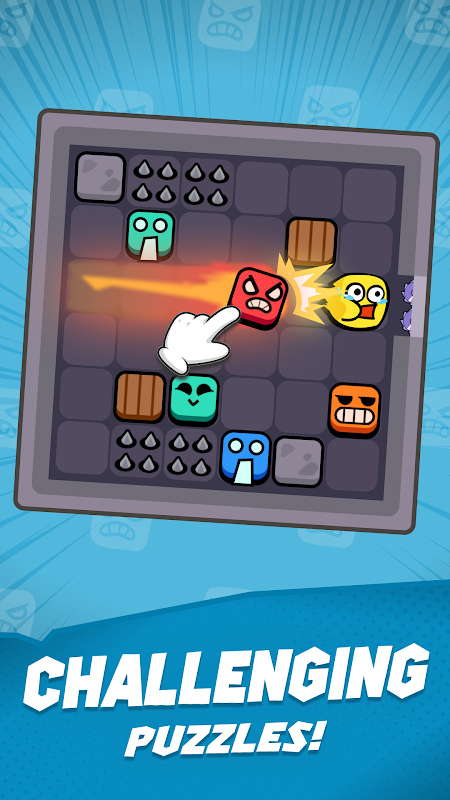 准备好迎接独特而具有挑战性的益智体验,每一步都很重要!在“愤怒方块 - 推拼图”中,您将控制充满愤怒和动力的火红方块🟥。沿直线滑动(垂直或水平),使愤怒的方块飞过棋盘,将其他方块🟨🟦🟧推入致命的陷阱⚙️🪓!
