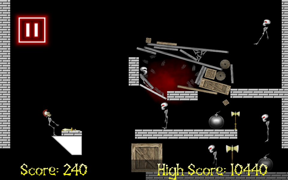 Angry Bones is a physics-based game where you pick up weapons and throw them at the enemies. If you are able to hit all of the enemies on the level with the limited amount of weapons that you have, you will be able to move on to the next level.