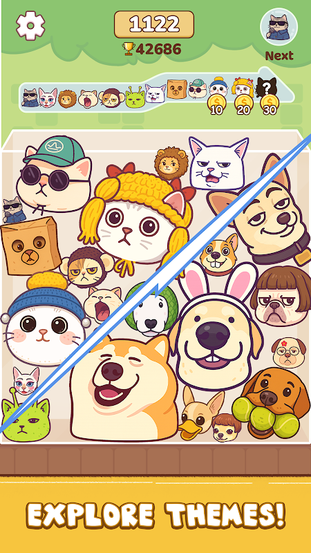 扔下小动物,看着它们蹦蹦跳跳,最终合成更大更可爱的形态。从小猫到熊猫,再到神秘的混血动物,每一次合成都充满惊喜。游戏简单有趣,非常适合在您需要休息时快速畅玩。