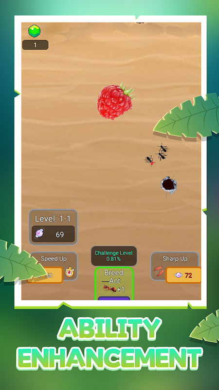 能力强化:通过啃咬食物,提升蚂蚁的移动速度和咬合能力。