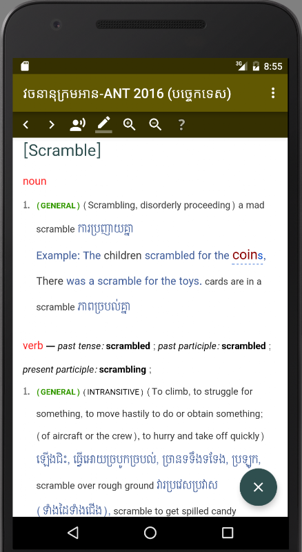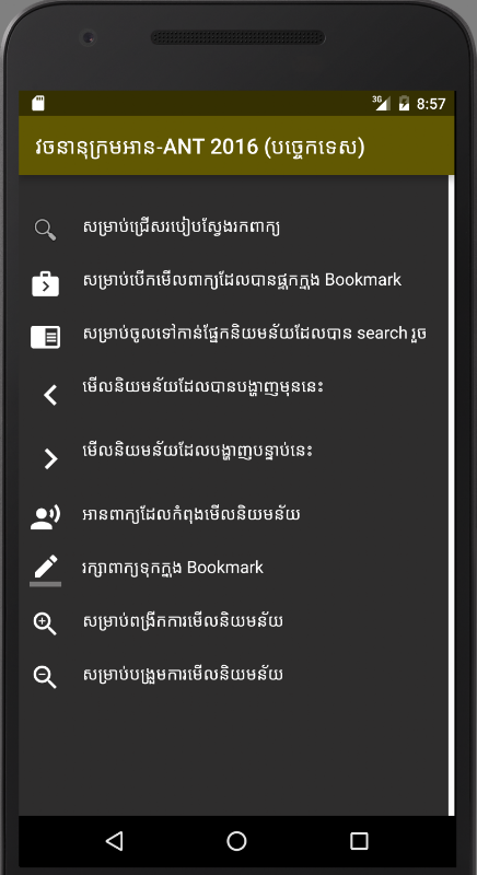 - 包含3技术的词典:英语对英语,英语对高棉语,和高棉到英语
