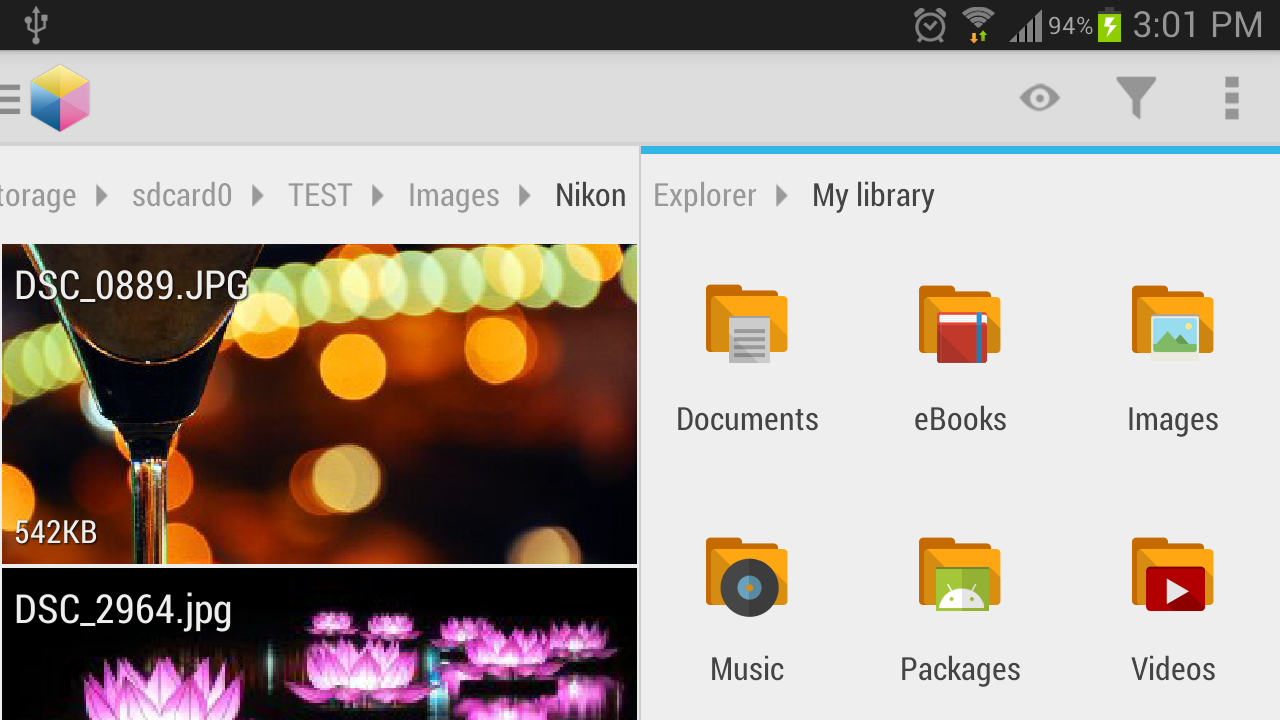 This is the first multi-panel file explorer for Android. It features "Drag & drop anywhere" to bring the best user experience.