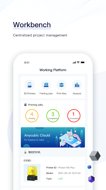 Anycubic Cloud致力于简化打印流程,让每个人都能享受3D打印带来的“智能制造”自由。