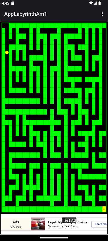 该应用可以生成具有指定宽度和高度的迷宫,最多可包含 10,000 个单元格。每个单元格要么是墙壁,要么是自由通行的。路径(即墙壁)是随机生成的——其中一个选项是随机生成的,第二个选项是静态的三个迷宫供您学习。道路、墙壁和路径都涂上了不同的颜色,您可以选择不同的颜色。迷宫的通行由一个移动的小球模拟,小球可以通过多种方式移动:拖动、重力、发出指令(左、右、上、下)、独立移动和加速移动。输出是与小球颜色相同的单元格。该应用具有点对点路径查找功能。