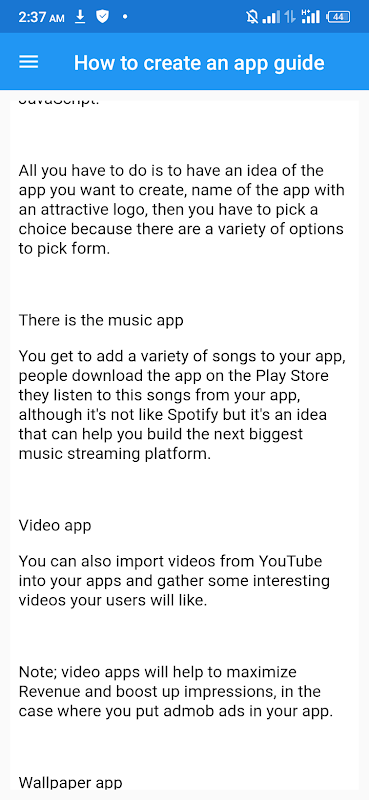 App Builder Guide is an app with instructions on how to create a mobile app, without any coding skills or knowledge