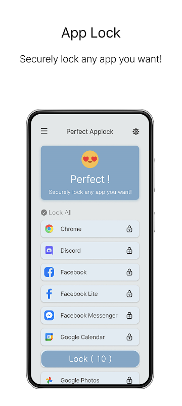 使用 Perfect Applock 锁定 SNS、图库、Messenger、邮件和联系人应用程序以保护您的隐私!并确保您的手机安全!