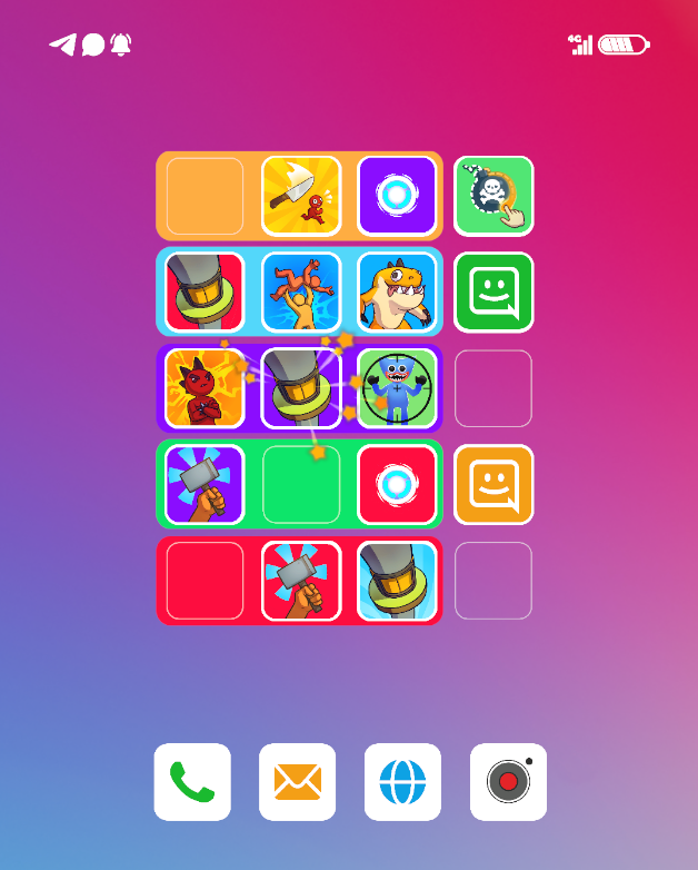 In this game you'll switch position of the apps as you normally do on your phone to set them in the right zones. The thing is in the colour of the zone and background of the icons. Make them match and clear the levels.
