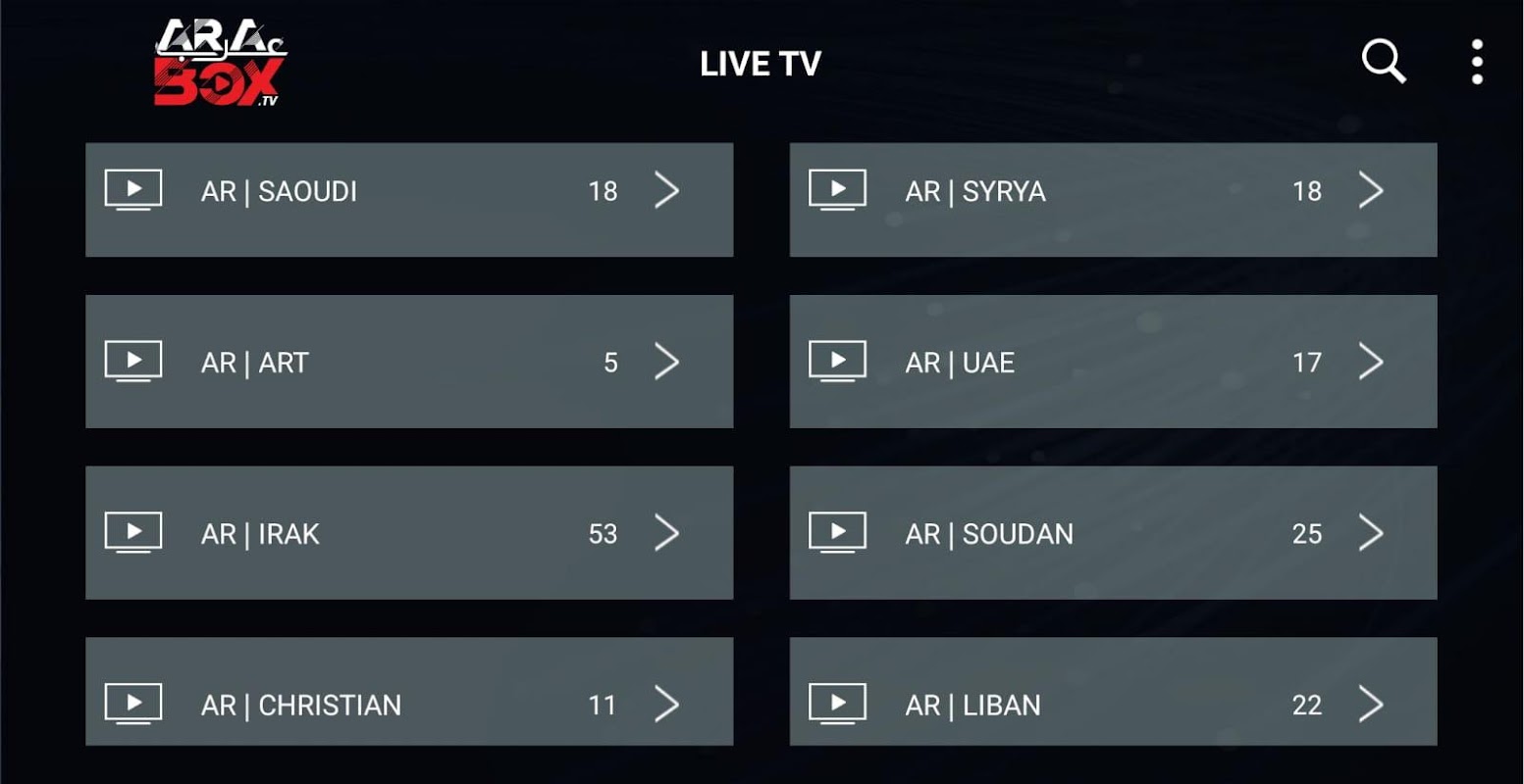 the channels list comes in categories sorted for you, such as sports folder or movies or Arabic , English,French,Moroccan ,Egyptian ,Algerian , Tunisian,Gulf,Islamic,christians,Kids,Sports,News