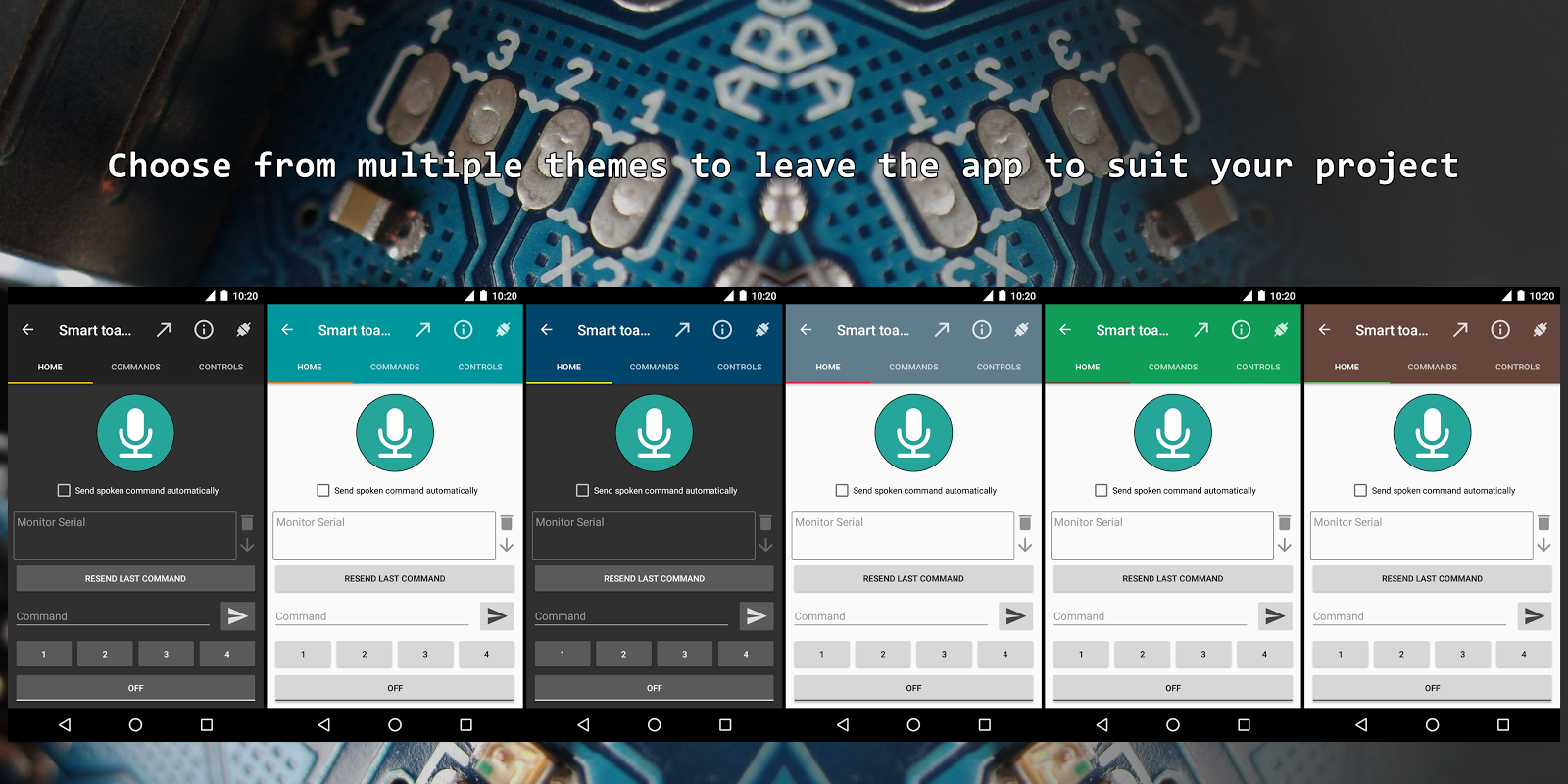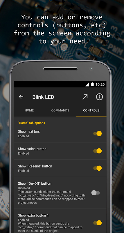Through the +Arduino Control you can send voice and text commands to your Arduino via Bluetooth and still simplify your program. Thanks to the command map you will be able to make a simple logic in your Arduino, it works like this: you give a command to the app and it sends a code that you configure to your Arduino (e.g., when you say "on" the app will send "1" to the Arduino)!