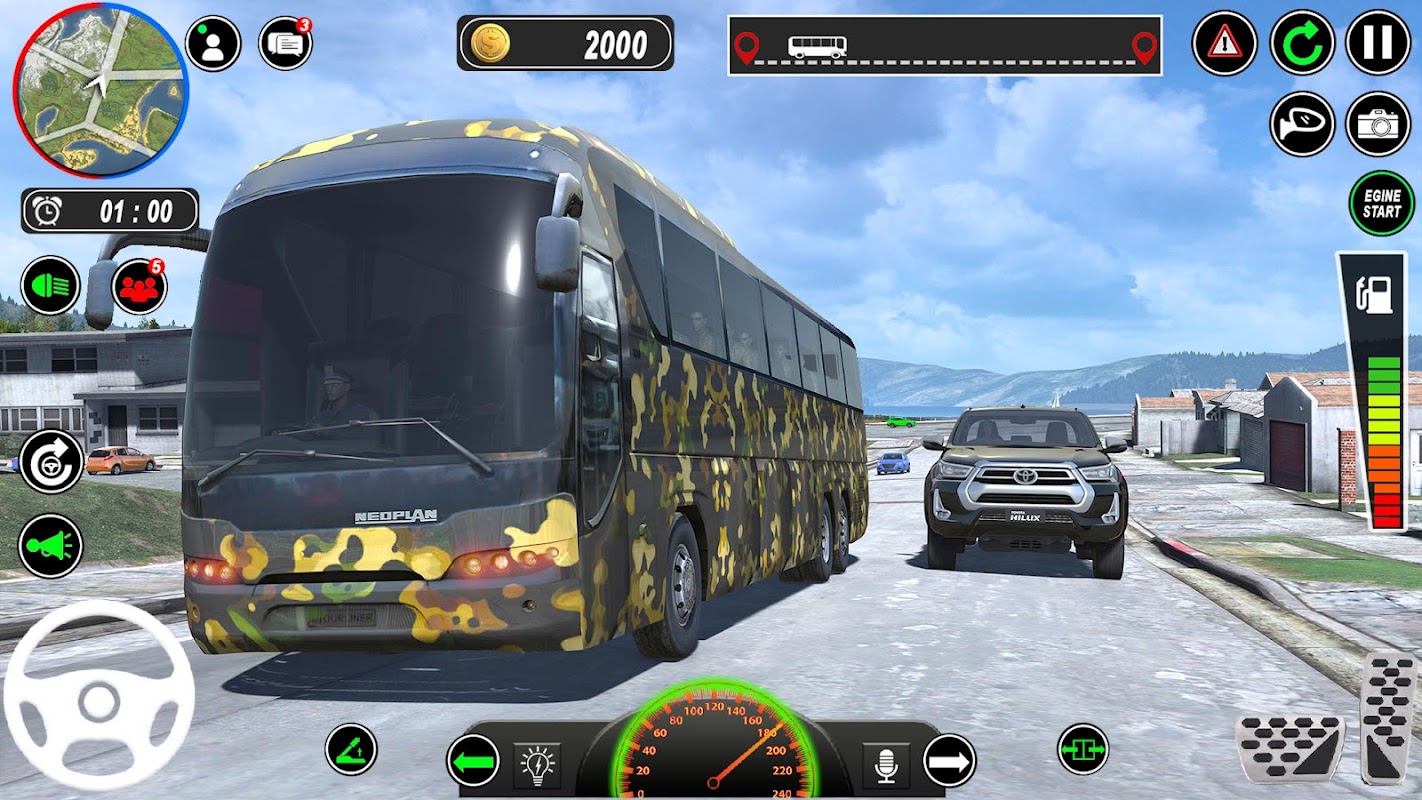 在此陆军公交运输游戏中,三种控制倾斜,转向和按钮的类型:陆军教练公交驾驶。接受挑战并出色地履行职责,并在军事教练“公共汽车驾驶:越野公共汽车游戏”中赚钱。 Army Bus Driver:Bus Games 2020为您提供了惊人的机会,成为了Army Bus Driving Simulator:Army Bus Games中的驾驶员。准备就绪。开始您的美国陆军教练巴士驾驶工作,并成为2020年巴士模拟器奖。在疯狂和危险的轨道上行驶,以完成此Offroad军车教练模拟器:驾驶游戏2020最佳模拟器游戏。您有机会因此打开引擎,享受陆军公交车驾驶模拟器的驾驶:陆军公交车游戏。