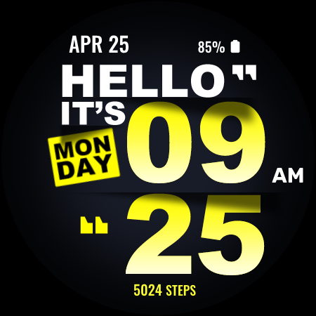永远不要忘记今天是什么日子!每次您查看手表时,Hello Day 都会通过一条简单、时尚的信息提醒您当天和时间。无论您在旅途中还是需要快速提醒,这种时尚现代的设计都能让您随时了解情况。保持井井有条,保持正轨,让您的手表每天提醒您今天的事情!