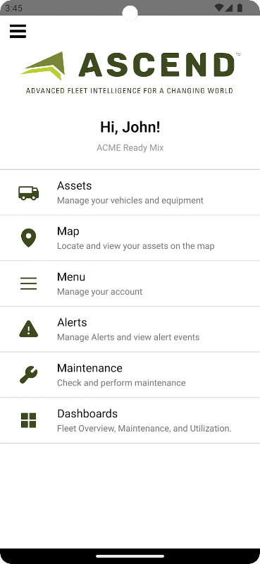 Ascend Fleet 是一个车队管理平台,包括针对各种车辆和设备(例如汽车、卡车、拖拉机、拖车、建筑设备、发电机、集装箱等)的路线优化、资产跟踪、监控和运营管理。 Ascend Fleet 将您的车辆数据转化为有用的信息和可操作的见解,以便您可以定位和监控公司资产、降低成本、提高利用率并最大限度地提高生产力。 Ascend Fleet 是一款综合性混合车队 GPS 远程信息处理平台,使用简单且易于安装。我们构建的解决方案可帮助复杂的车队更智能地工作、更安全地运营、促进增长并灵活地度过充满挑战的时期。