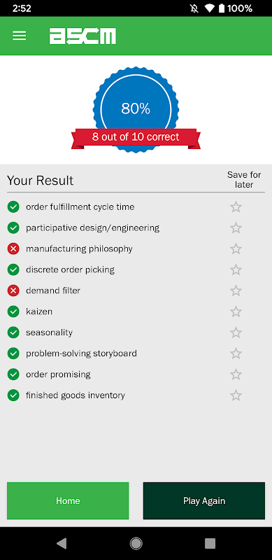 - 抽认卡类别涵盖所有 ASCM 认证考试:CPIM、CSCP、CLTD 和 CTSC。