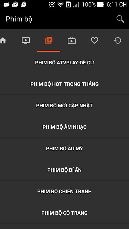 Thêm chức năng Ưu thích và Lịch sử và Ti Vi trực tuyến.