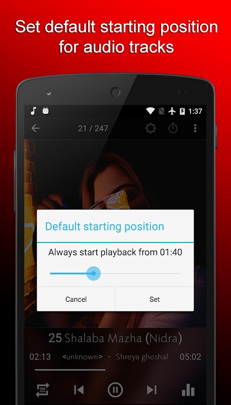 - Gesture controls- You can control the music player volume, track with simple touch gestures.