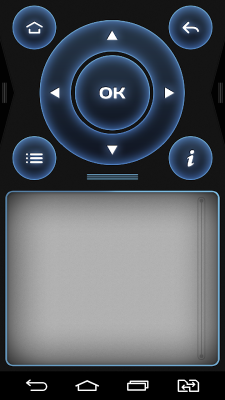 应用程序的接口是一个可调节的遥控器与所有控制元件,其是相同的光环高清媒体播放器的标准遥控器上。