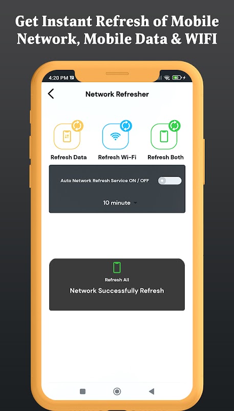 一个按钮即可刷新您的移动网络、互联网速度和 WIFI 连接。