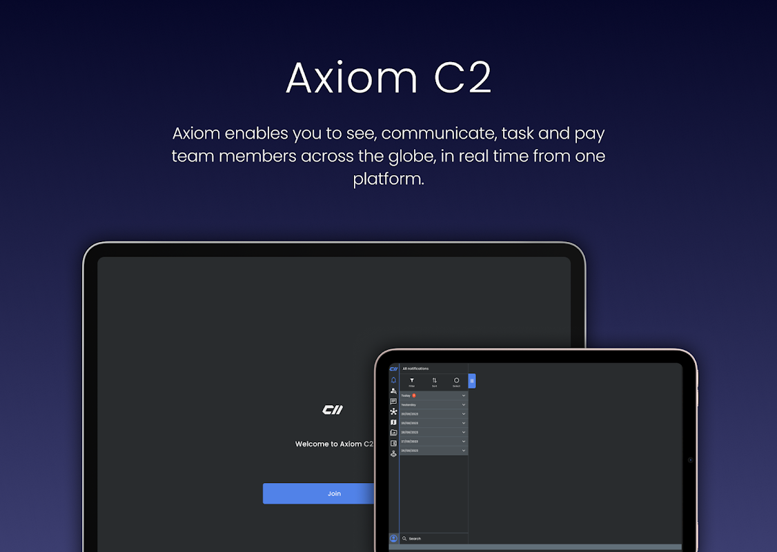 欢迎来到 Axiom C2,这是全球团队和项目的终极协调和管理平台。 Axiom 旨在满足拥有全球供应链的跨国公司、安全、人道主义和非政府组织的独特需求,是您实现运营转型的首选解决方案。