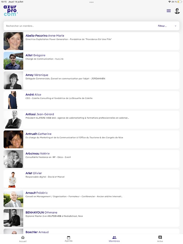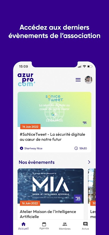 AzurProCom 的移动应用程序现在免费提供给该协会的所有成员。使用它来访问协会成员的联系文件。还可以找到协会的所有新闻,将活动保存在您的日历中,并直接从 HelloAsso 上的应用程序注册。