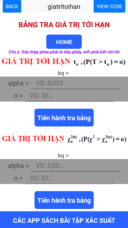Có thể tra các giá trị tới hạn cần thiết cho phân phối Chuẩn, phân phối Student, phân phối Khi bình phương, phân phối Fisher - Snedecor.