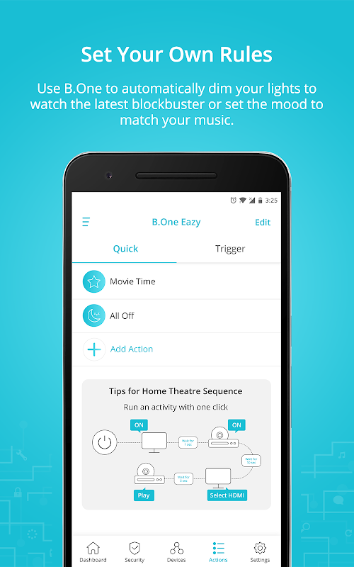B.One 集线器“操作”使您可以通过一次触摸或语音命令控制多个设备。通过“操作”,您可以在家中自定义和控制多个事件。