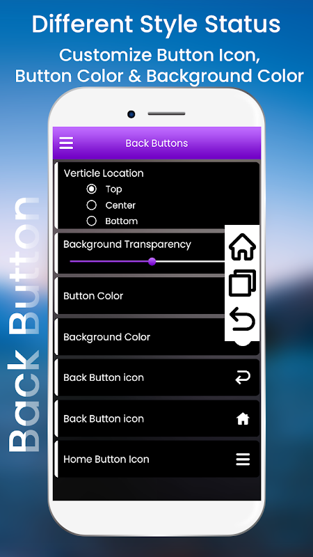 Back Button-No Root 应用程序提供了多种功能和颜色来制作很棒的导航栏,可以在移动屏幕上的任何地方使用它。