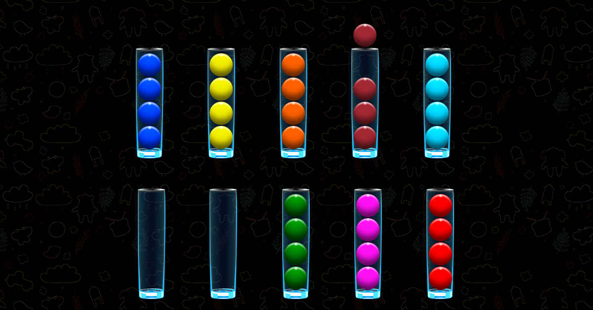• 将所有相同颜色的球堆叠成一个玻璃杯。