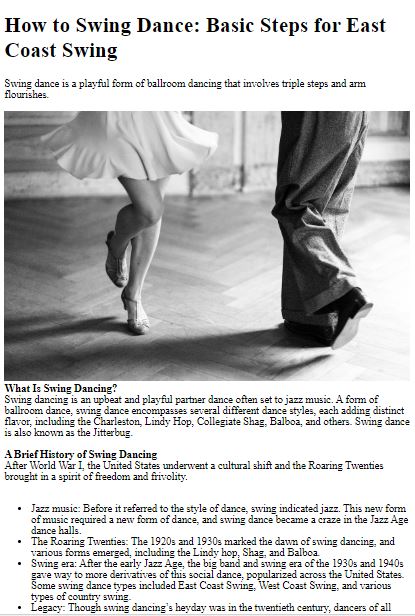 东海岸秋千:通过东海岸秋千的充满活力和俏皮的动作来体验秋千的乐趣,包括基本步、转身和标志性的摇滚步。