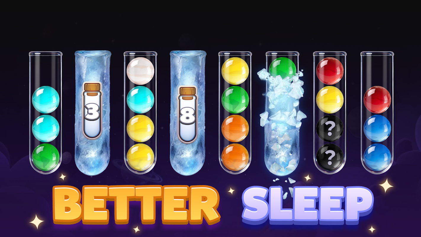 - 收集成就:用相同颜色的星球装满瓶子,即可解锁“星球礼盒”,赢取专属奖牌!
