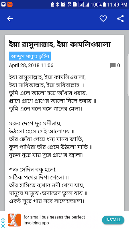 আমার অ্যাপ্স নিয়ে এলো ইসলামিক গান (বাংলা গজল) এর লিরিক্স বা কথা সম্বলিত মোবাইল অ্যাপ। জনপ্রিয় ১০০ র বেশি বাংলা গজল (Islamic Songs) নিয়ে বানানো এই অ্যাপ। এখানে যে সব লেখকের গজল থাকছে তা নিম্নরূপ-
