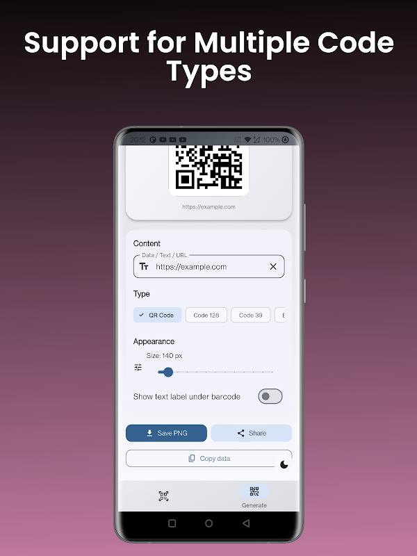 该应用程序还允许创建二维码和条形码,以便分享或保存。