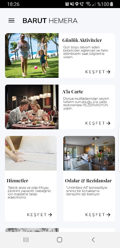 该应用程序允许通过在到达酒店之前在预登记部分输入个人信息来加快登记过程。您可以在酒店住宿期间获得有关您房间的详细信息,并可以预订点菜餐厅。您可以立即将您的所有请求和需求发送给我们,也可以将您对通过应用程序收到的所有服务的评论作为调查发送。
