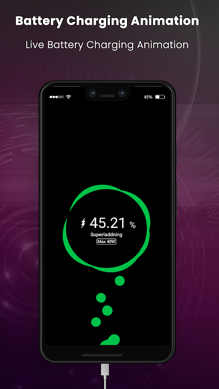 用于充电的免费炫酷霓虹灯效果电池动画有助于在为手机充电时设置动画效果。充电显示应用程序通知肯定会告诉您手机电池何时充满电,并且小工具可以自动从移动充电器断开电源。