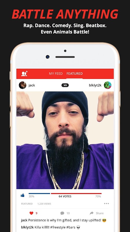 Battle App is an interactive short video platform for people to battle with their friends over a beat.