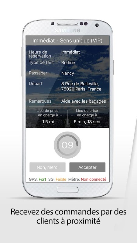 - D’un service de navigation précis pour vous rendre au point de départ et conduire votre client