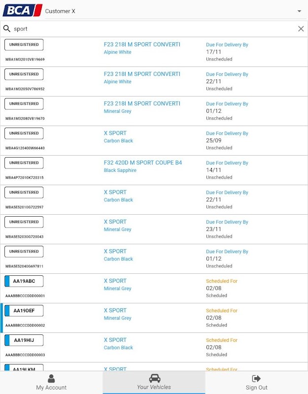 •搜索车辆的收集和交付日期。