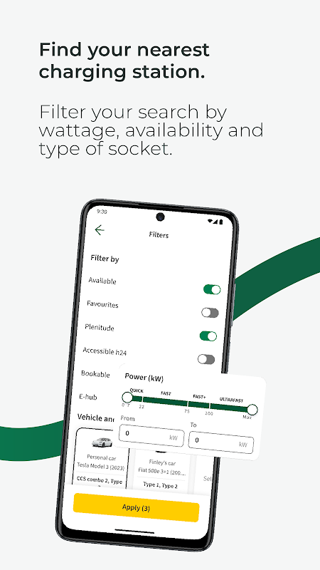 通过筛选充电速度、插头类型和可用性来搜索充电站,然后点击“前往”按钮轻松访问您选择的充电站。