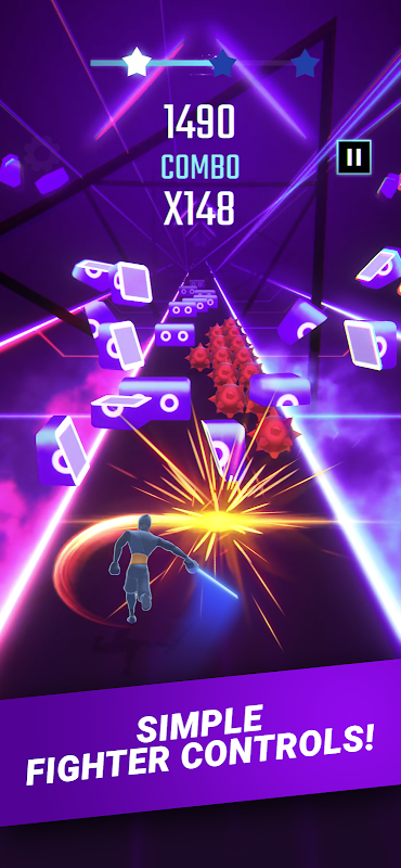 这不是Tap Tap游戏。不要点击!选择您喜欢的歌曲,按住并拖动以移动您的军刀战士并在节拍上切下点块。