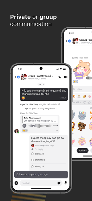 - 随时随地保持联系:无论您的团队身在何处,都可以通过群组消息、语音/视频通话和语音注释享受顺畅的协作。