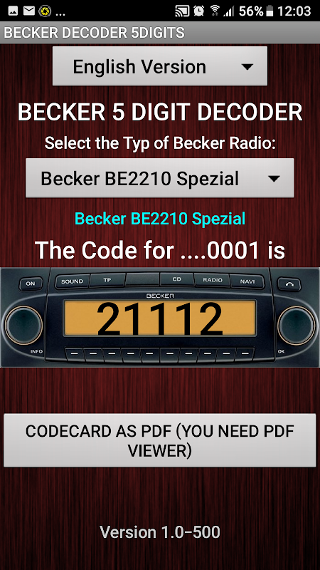 APKPure 使用签名验证功能,确保为您提供无病毒的 Becker 5Digit Radio Code APK 下载。