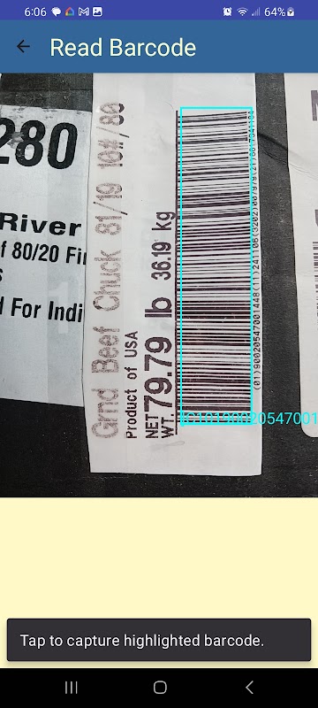 快速数据采集:使用设备的摄像头即可立即从牛肉产品条形码中提取所需数据。