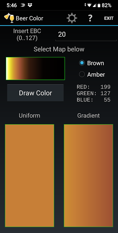 该应用程序包括几个不同的indipendent部分,每一个涉及不同的计算,具体的颜色,痛苦和强度(重力和ABV)用比重计和折射。每个部分都有其自己的帮助页面和各种功能的解释。