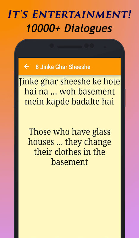 - You can enjoy thousands of Hindi Dialogues for free access from this App.