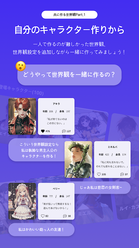 在共同创造的世界观中共享相同的场景(人物/地点/事件),并创造你自己的人物故事。