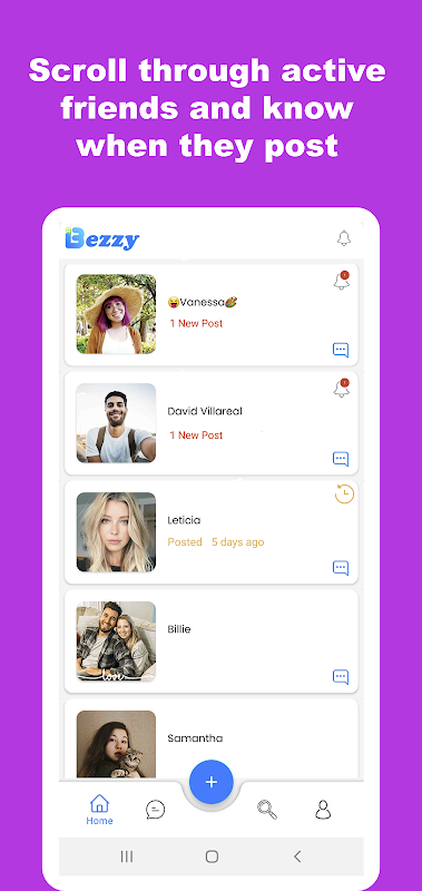 Bezzy 的意思 - 亲密的朋友。它是一个社交平台,可让您关注并与朋友/家人联系。永远不要错过最重要的帖子。不再滚动浏览无用的内容和错过重要的帖子。 Bezzy 独特的主页允许用户选择要查看的朋友/家人内容。不再为您选择算法。上传照片、视频,您还可以轻松地向他人发送即时消息。